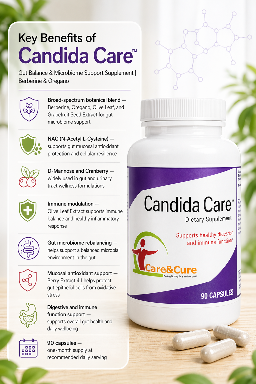 Care & Cure Proprietary Enzyme Blend (Proteases I, II, III, IV; Amylases I, II; Glucoamylase; Cellulase; Invertase; Maltase; Lactase; alpha-galactosidase; Lipase; Peptidases; Pectinase; Phytase)700 mg*